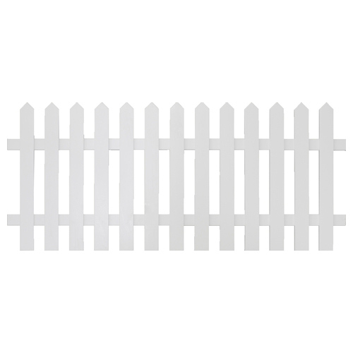 Ett vitmålat staket i klassisk stil, vilket ramar in hela eller delar av trädgården.