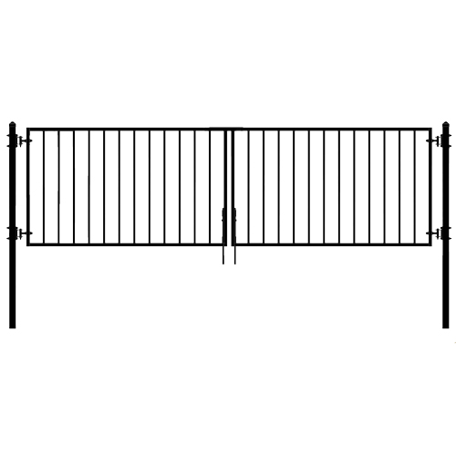 En komplett dubbelgrind, Inklusive 2 grindar, 2 st stolpar, 2 st grindspärr, 4 st gångjärn samt 1 st barnstugelås.