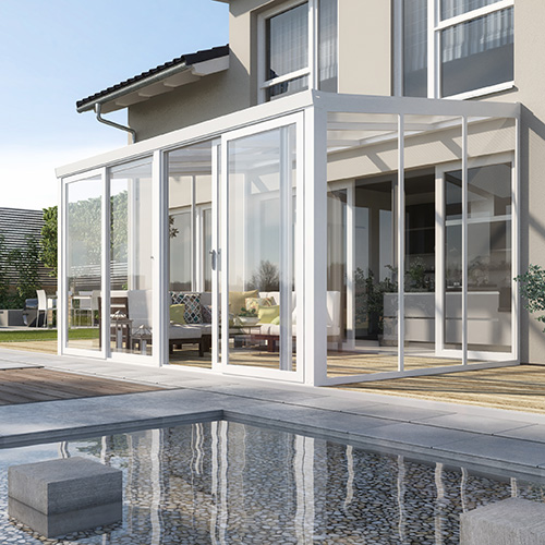 Det är ett uterum skapat för sommarhalvåret och är det perfekta valet för dig som är stilmedveten och vill få ett nytt favoritrum i din moderna villa. Du väljer mellan vita eller gråa aluminiumprofiler.