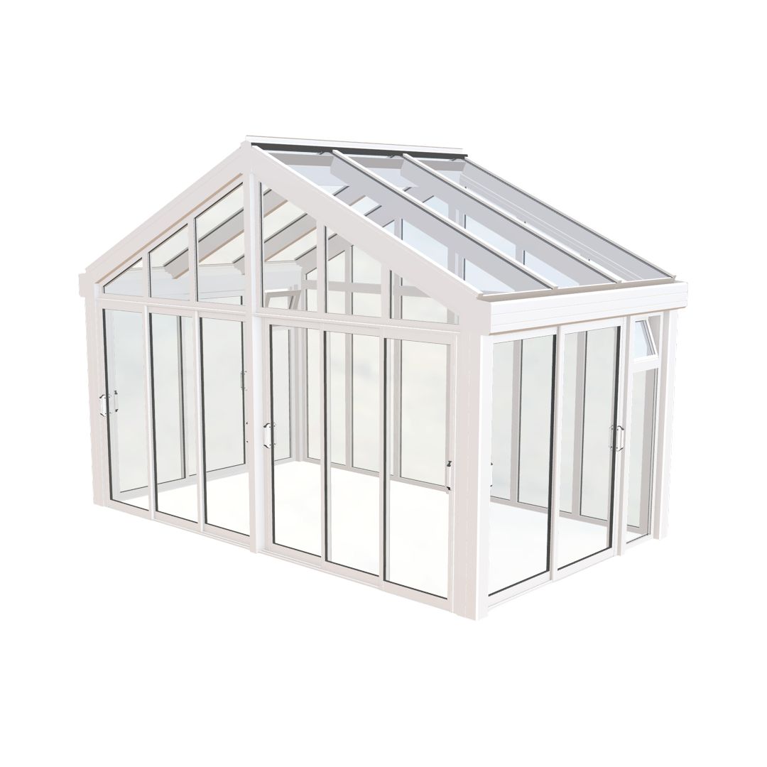 Uterummet leveras alltid med fast helglasad baksida och med 2 st fasta partier i med vädringsluckor.