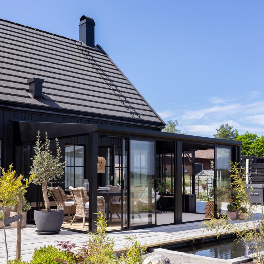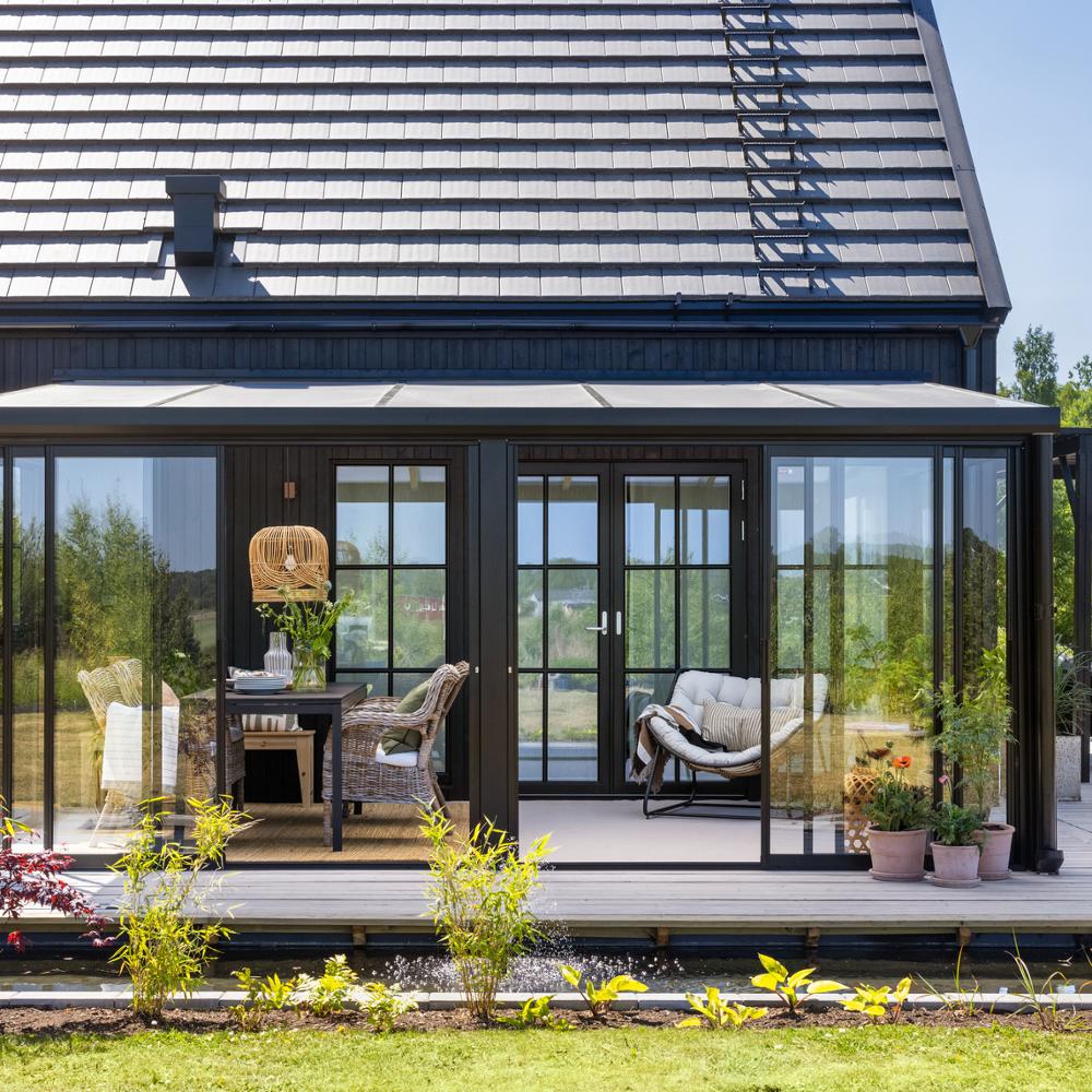 Ett uterum i aluminium är så nära underhållsfritt som det kan bli, vilket borgar för många härliga år framöver. Den stilrena designen finns i 6 storlekar och passar utmärkt till hus i modern och urban stil.