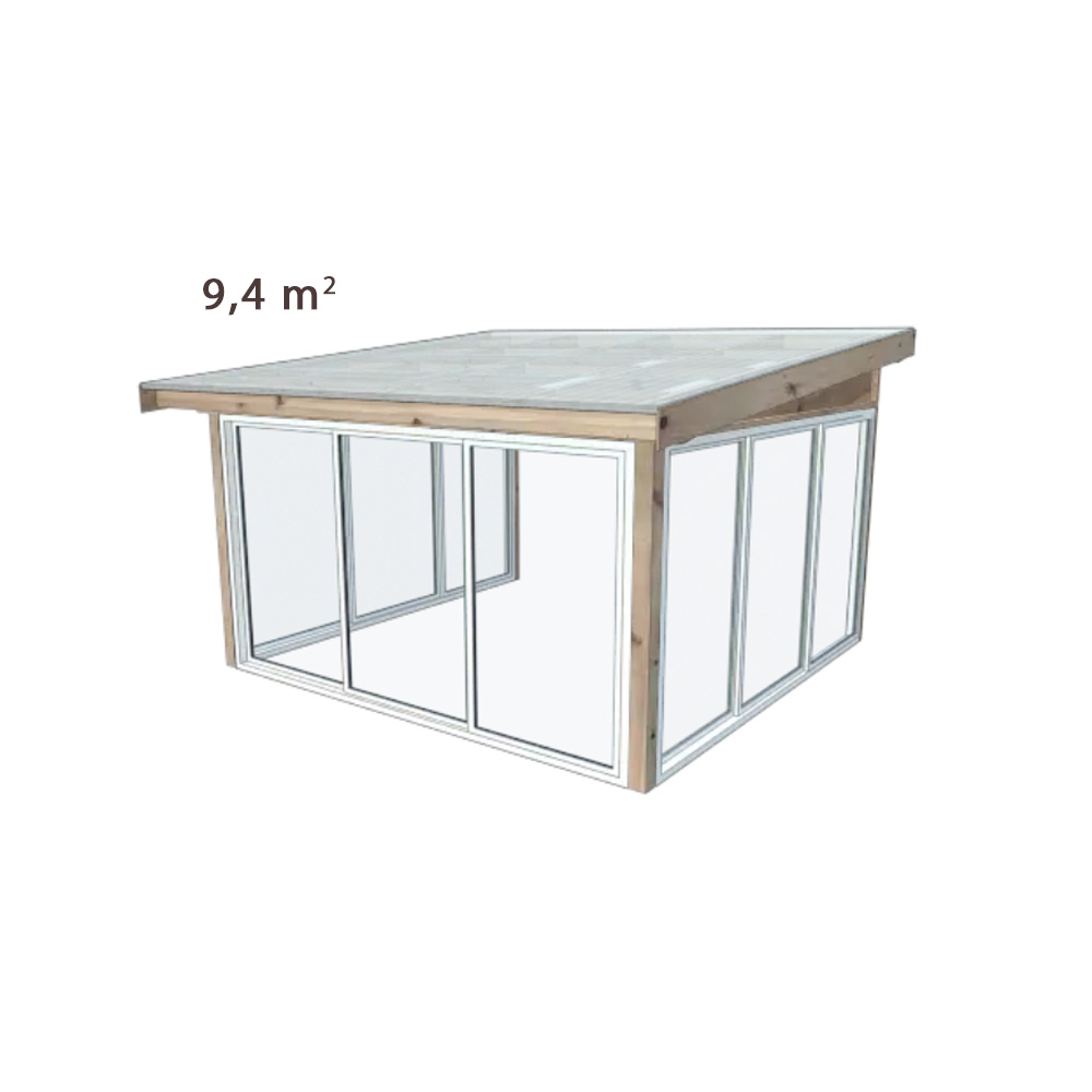 Uterumspaketet innehåller en okapad och obehandlad limträstomme, vita skjutdörrspartier och ett 10 mm kanalplasttak. Finns i två storlekar. Monteringsanvisningar medföljer.