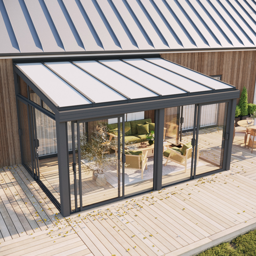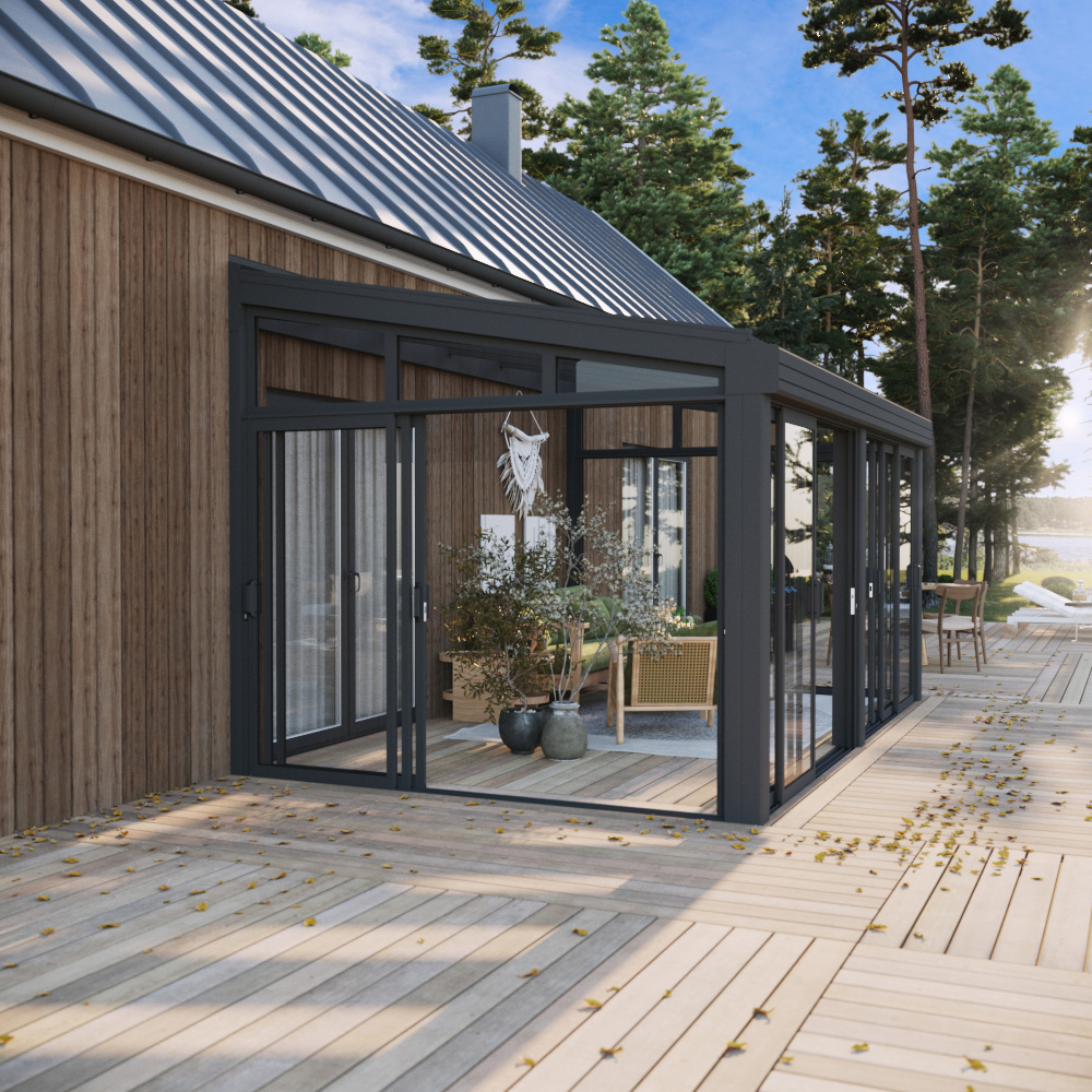 Notera! Detta uterum har grå stomme och profiler samt glastak. Bilder visar olika varianter.