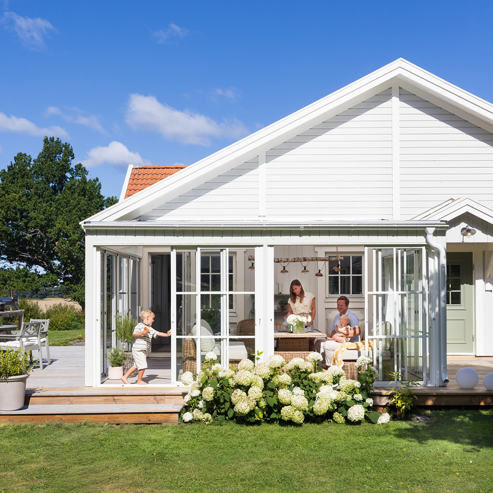 Forma är det senaste tillskottet i uterumsfamiljen. Genom att ta bort takutsprånget och klä stommen med panel skapas ett rent och modernt uttryck. Kan även köpas utan panel om du vill sätta din egen prägel på uterummet och skapa något helt unikt.