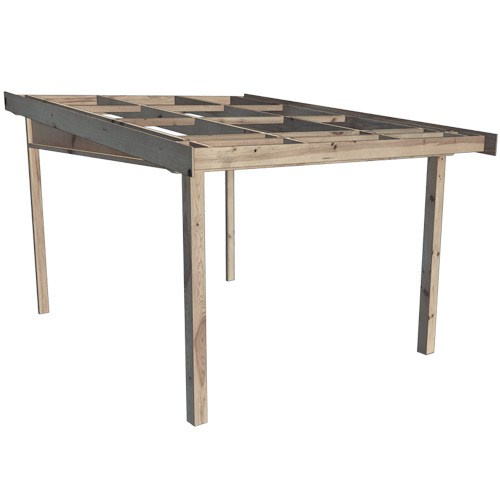 Vi har många okapade uterumsstommar att välja mellan. De består av okapade delar i limträ och monteringsbeslag som kapas till önskade mått.