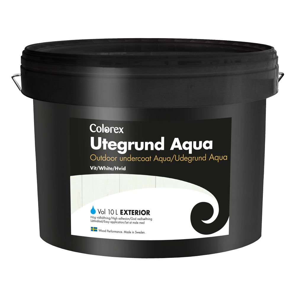Colorex Utegrund Aqua Helmatt, vattenburen oljegrundfärg för grundmålning av trä utomhus. Grundfärgen används vid övermålning med oljefärg eller akrylatfärg. Passar både till nytt virke samt tidigare målade och slitna ytor.