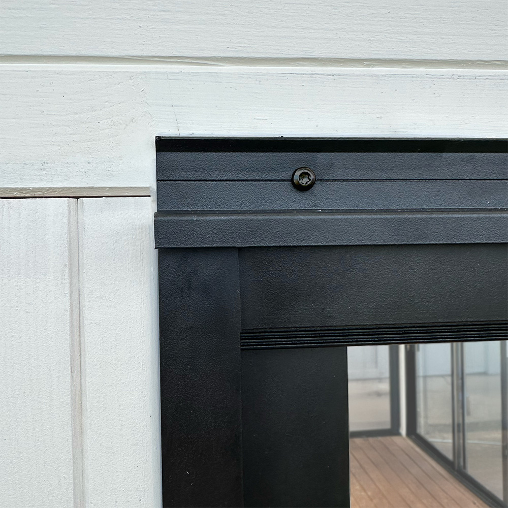Köp till droppbleck som monteras ovanför partiet för att styra vattenavrinning. Droppblecket förhindrar att vatten rinner in längs väggen och tillbaka in i uterummet. Det gör också att fodersidorna gifter ihop sig med karmen med ett snyggt och praktiskt resultat.