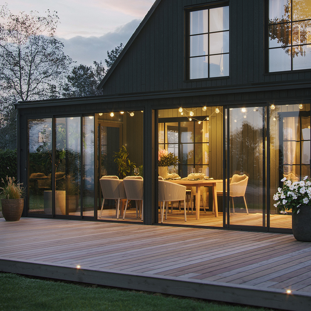 Skjutdörrarna är anpassade för en riktigt lång säsong, från tidig vår till sen höst. Du kan se fram emot många härliga dagar och kvällar under stora delar av året.