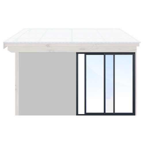I rutorna uppe till höger anger du de mått som du önskar på ditt skjutparti, välj bredd mellan 1301–3900 mm och höjd mellan 500–2300 mm. Du bestämmer alltså själv om du vill att partiet ska fungera som fönster eller dörr i ditt uterum.