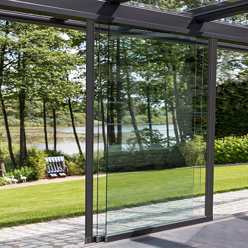 Panorama är den tyska högkvalitetsleverantören Solarlux populära SL20-serie i helglas, som på så vis är helt transparent och möjliggör ett flexibel skydd för vind och regn utan att något av utsikten förtas. Systemet kännetecknas av hög användarvänlighet, då övriga glaspaneler hakar i och följer med när en sektion skjuts åt sidan. Ett väldesignat, välbeprövat och genomtänkt koncept i aluminium för sommarbruk.