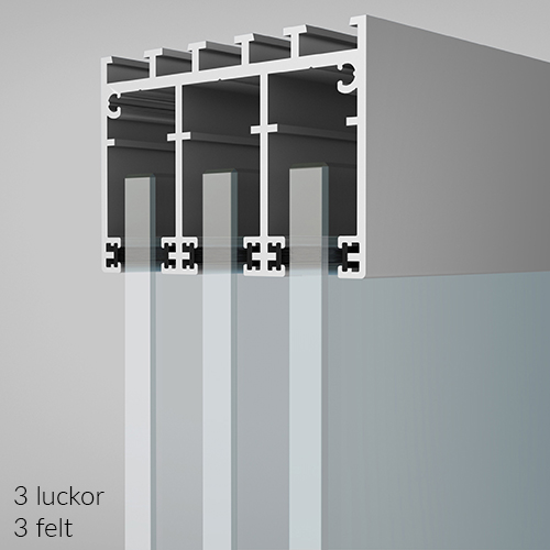 Här hittar du måtten på takräls och golvräls specifikt för de skjutpartier du vill ha.