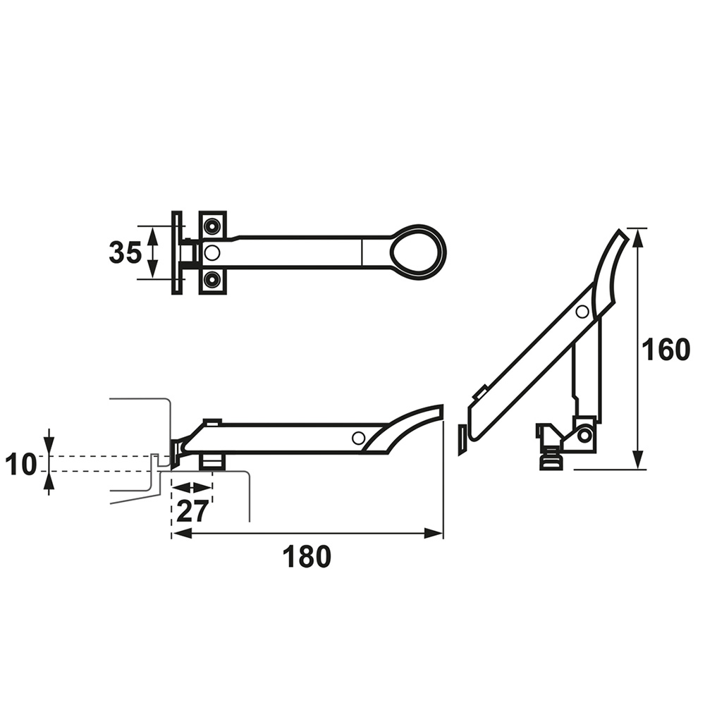 Vädringsfönstret består av en fast lucka som förses med gångjärn och uppställningsbeslag. Överbleck medföljer för att skydda mot regn.