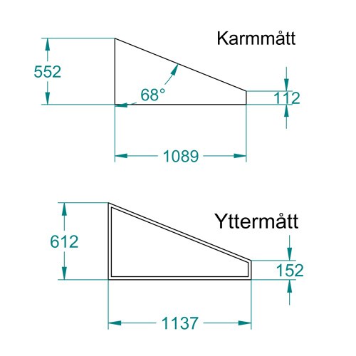 | Yttermått - Höjd | 612 mm / 152 mm |