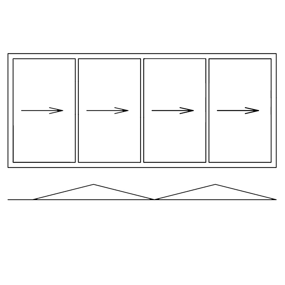 Du kan välja om du vill öppna dina vikdörrar från vänster till höger, eller tvärtom. Tänk dig att du står i ditt uterum och tittar på partierna inifrån för att göra ditt val. Vikdörrarna är utåtgående vilket ger dig mer plats inne uterummet och du kan möblera som du vill med gardiner, krukor och möbler. Partierna löper smidigt med kullagrade hjul i överkant. Detta ger en nedsänkt bottenskena och konstruktionen är mindre känslig för smuts, löv och barr då hjulen är väl skyddade i ovankant.
