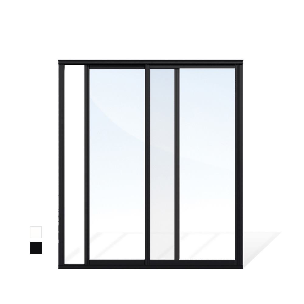 Finns med 2 och 3-luckor, i bredder från 140 - 410 cm. Anpassa ditt inglasade uterum efter dina egna önskemål och komplettera med fasta partier i samma serie. Välj mellan vita eller svarta partier. De svarta partierna är lackade i en strukturlack som är både mer hållbar och ger ett snyggare resultat.