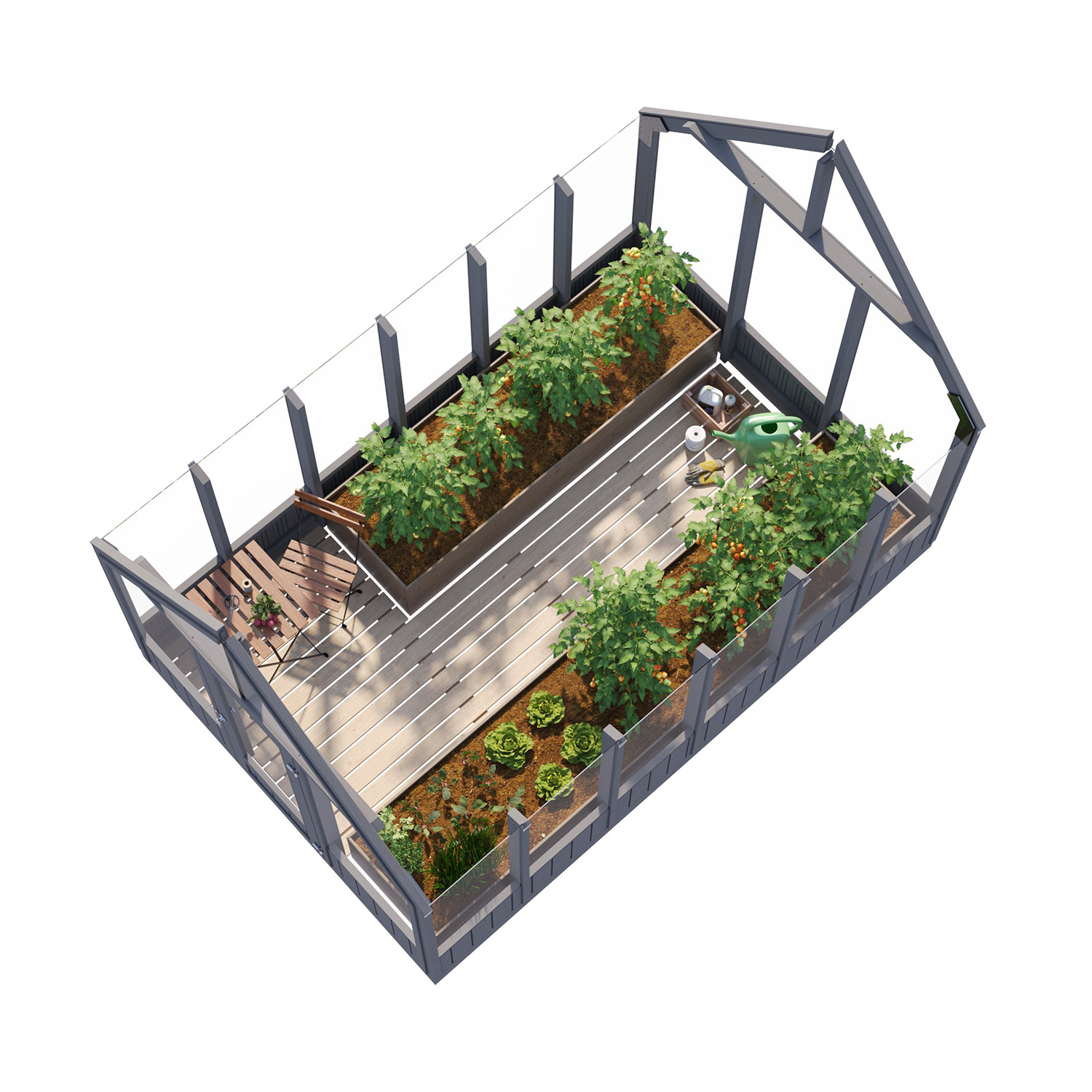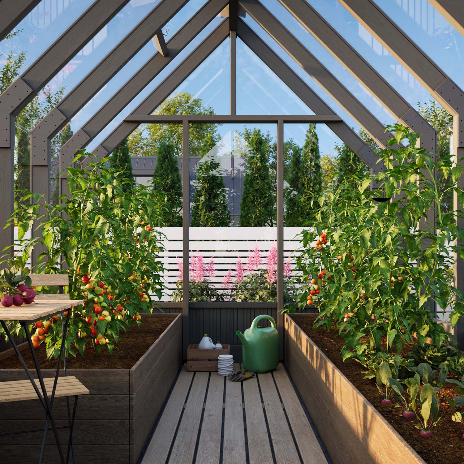 Myskänslan garanteras ytterligare av ventilationsfönster som gör det lätt att bibehålla en behaglig temperatur inne i växthuset så att både grödorna och du frodas.