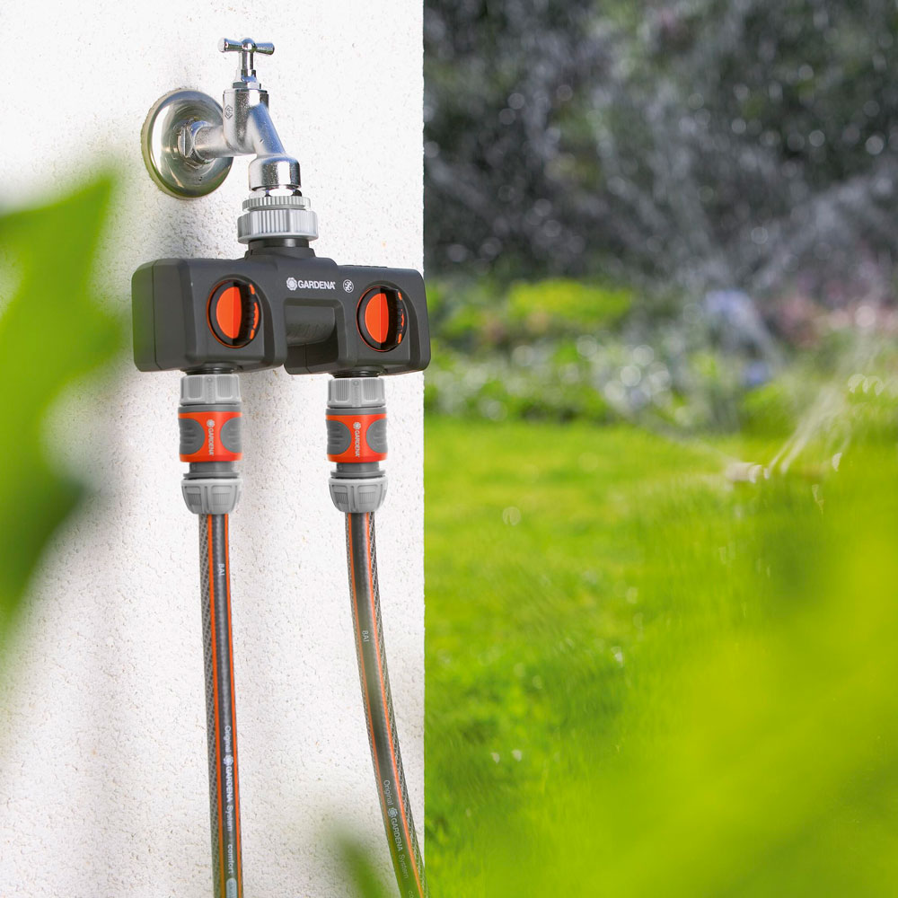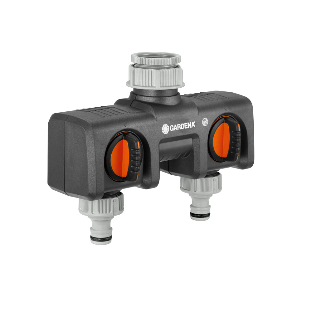 GARDENA Dubbelkrankoppling gör det möjligt att ansluta flera tillbehör till samma kran. Utgångarna är helt justerbara. Två GARDENA Vattendator kan anslutas till kopplingen. Krankopplingen kan konverteras till GARDENA Profi Maxi-Flow System med Profi Maxi-Flow System Gängad krankoppling (artikelnr 2801-20). GARDENA Dubbelkrankoppling passar kranar med 33,3 mm (G 1"), 26,5 mm (G 3/4"), 23 mm (G 5/8") och 21 mm (G 1/2") gänga.