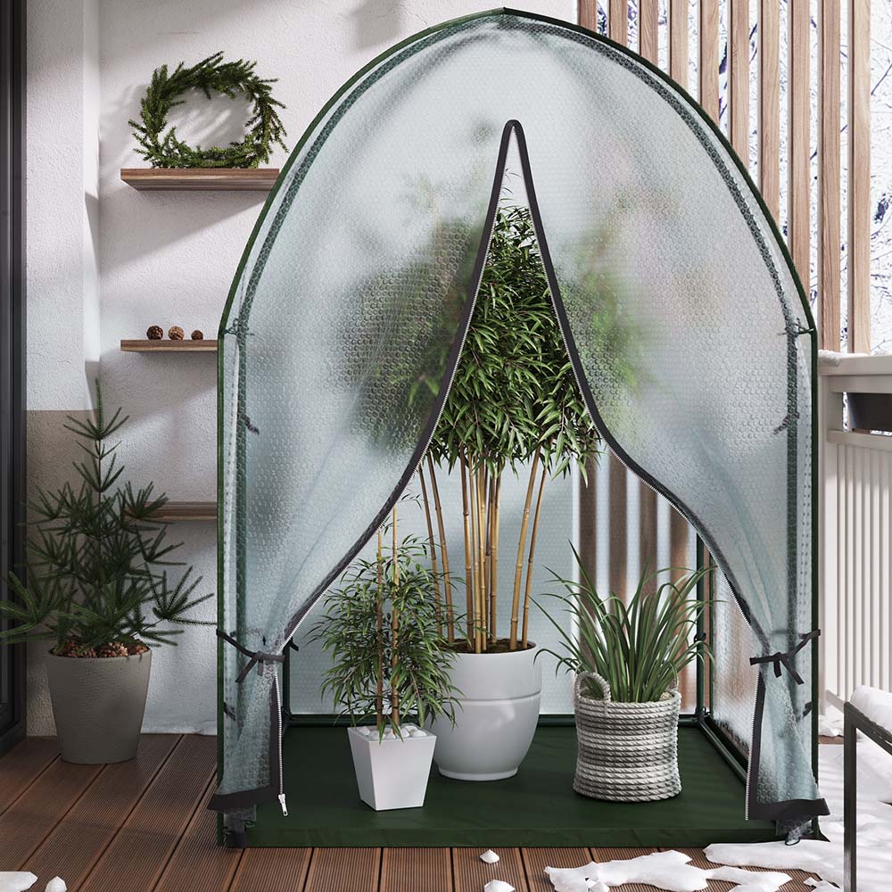 Se till att du ger dina växter de bästa förutsättningar att klara vintern. Säkerställ rätt klimat i ditt växthus med värmefläkten (idealisk för växthus upp till 12 m²) under den kallare perioden av året. Växttältet använder du för att ge ytterligare skydd och för att vara energismart (du behöver inte ha lika hög temperatur i växthuset). Övervintringstältet kan även användas på balkongen eller terrassen för att ge skydd mot vind, regn, fukt, kyla snö och frost.