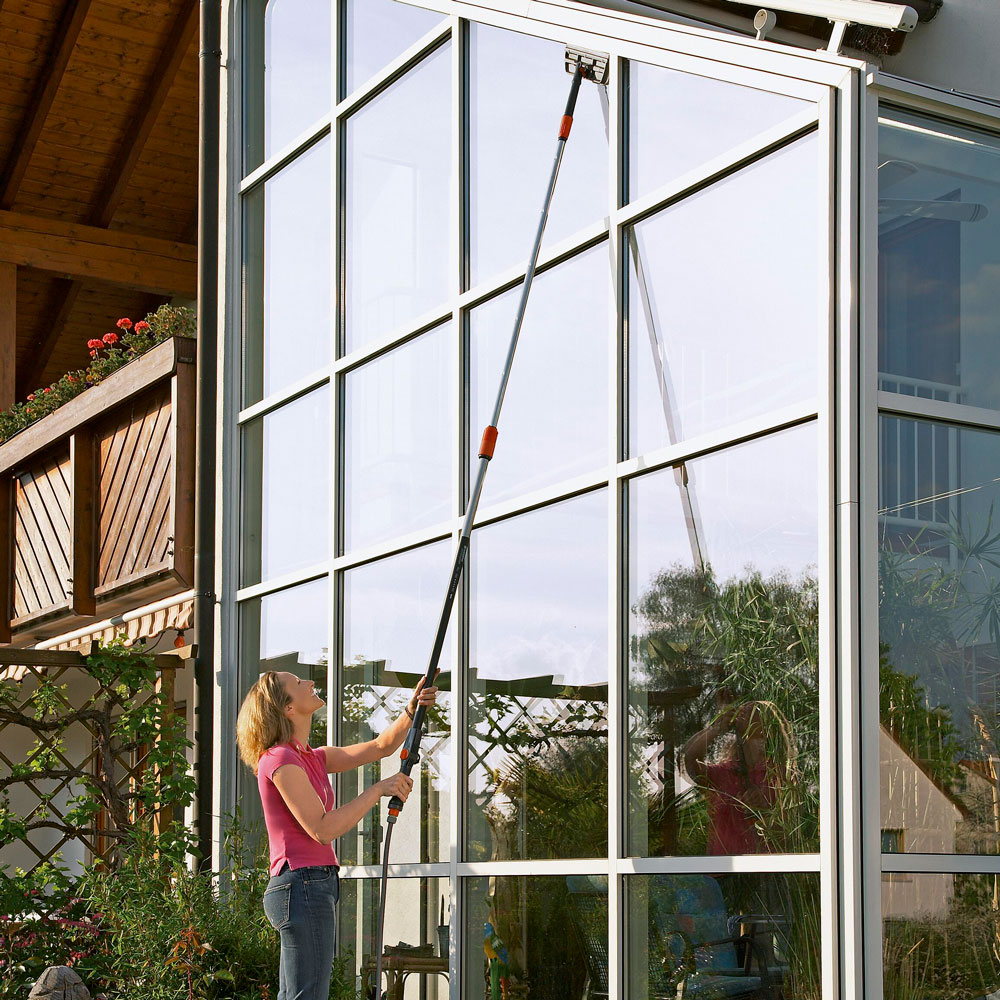 Behöver du ett vattenförande skaft som också kan användas högt ovanför axelhöjd? Då är GARDENA Vattenförande teleskopskaft det du behöver, eftersom den kan justeras i steg mellan 155 och 260 cm. Den är tillverkad i aluminium och är därför samtidigt lätt och robust. Tack vare den enkla, säkra och beprövade anslutningstekniken med skruvkoppling, kan alla Cleansystem-tillbehör anslutas enkelt till skaftet. Eftersom skaftet har en greppvänlig plastbeläggning är den bekväm att hantera, det blir inga skrapmärken, skaftet är halkskyddat och ytan känns aldrig kall.
