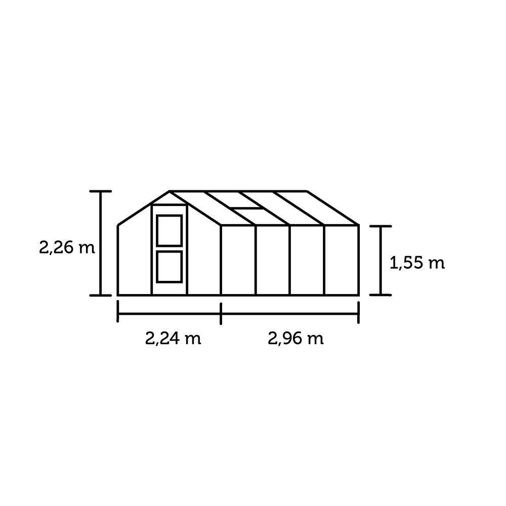 Växthuset kommer i tre olika storlekar och i två färger. Du kan välja mellan 3 mm säkerhetsglas eller 10 mm kanalplast.