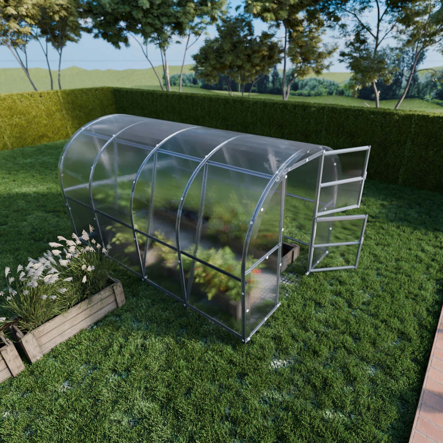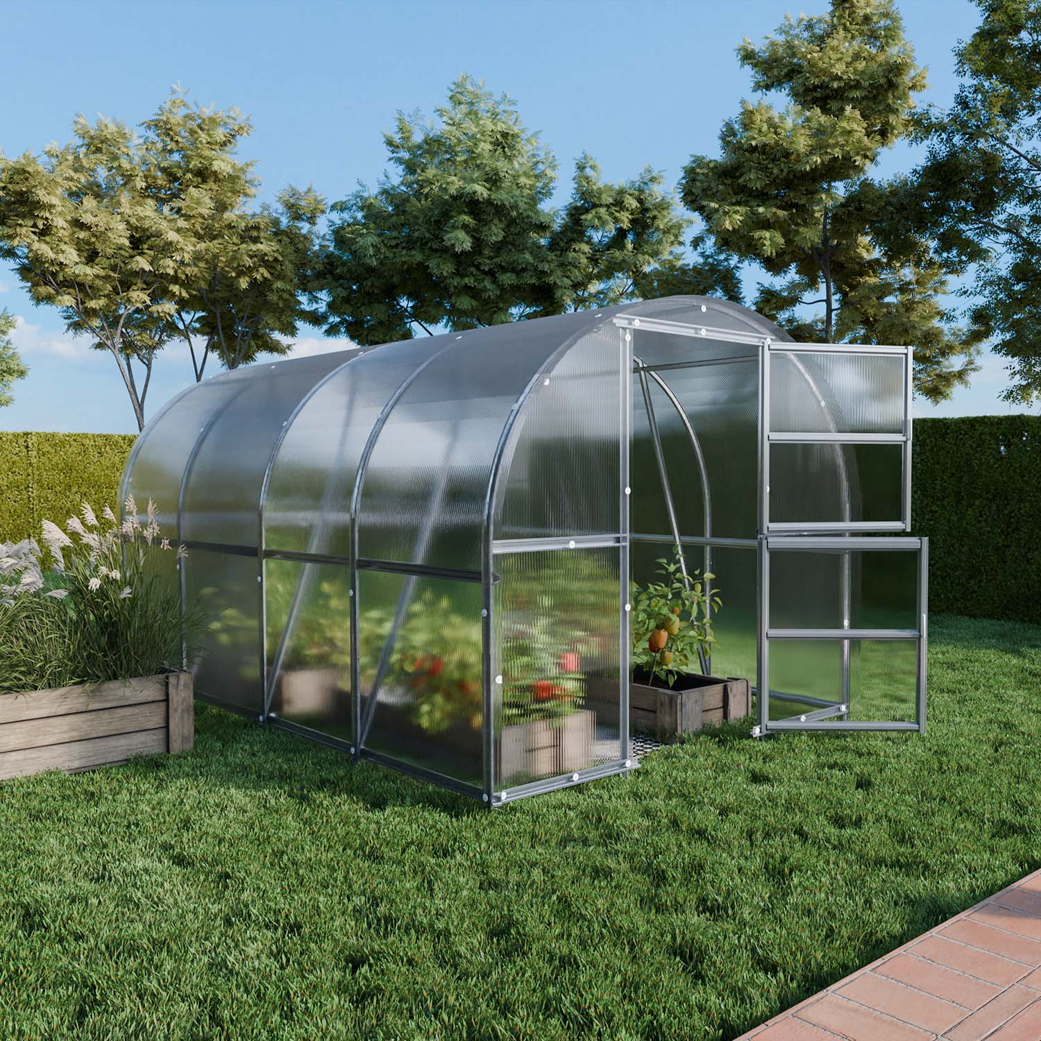 Tack vare sin genomskinliga polykarbonat med cirka 85 % transparens ger växthuset ett utmärkt solljus för din odling, och tack vare kanalplast med UV-skydd skyddas växter från farorna med direkt solljus. Kanalplasttak är det bästa alternativet för dina växter då det inte blir lika hett i växthuset som det kan bli med ett glastak.