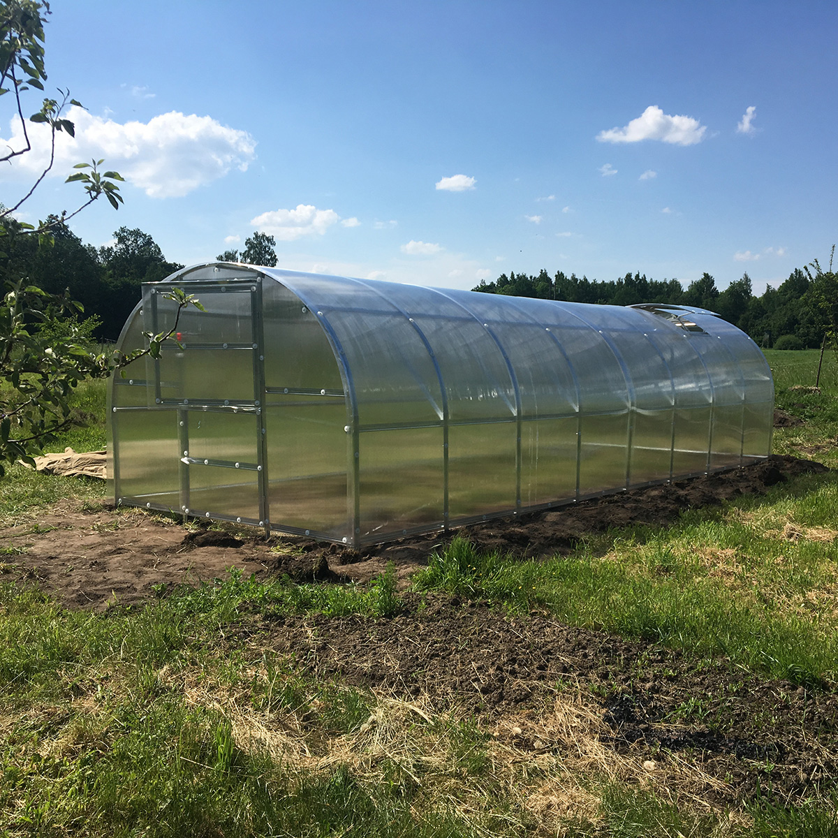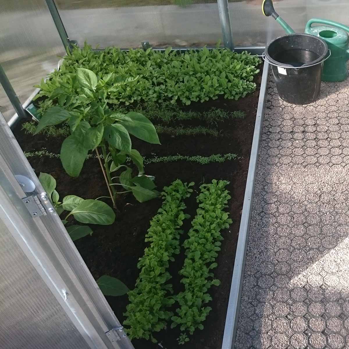 Dörr som monteras i fronten på växthuset samt 2 fönster ingår.