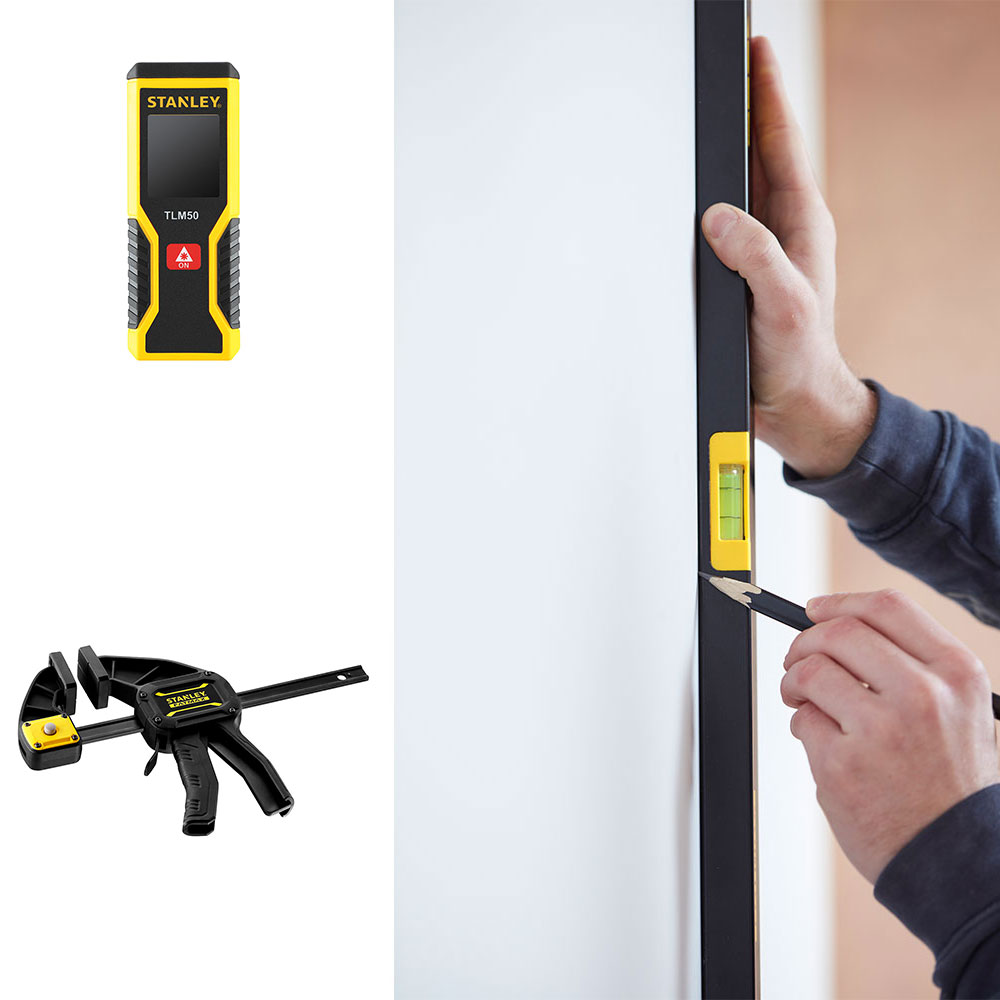 Komplett mätpaket från Stanley Paketet innehåller: 1 st Stanley Classic Pro Vattenpass 180 cm 1 st Stanley Fatmax Enhandstving 1 st Stanley TLM50 Lasermätare 15 meter Artikelnummer: 509960